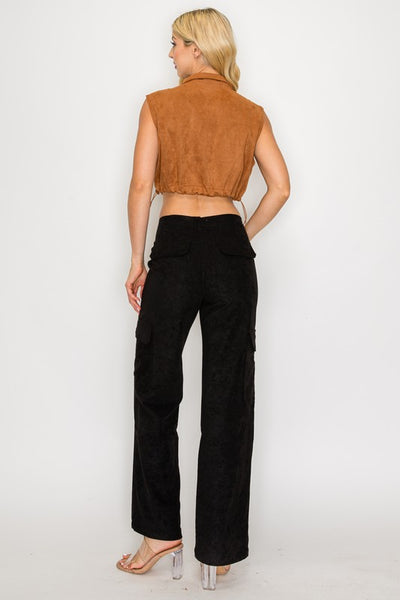 Cargo Pocket Suede Vest Tan